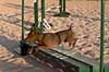 Pies delanteros: Cortos y redondos, dedos apretados unos a otros y arqueados (pies de gato), almohadillas fuertes, uñas cortas, negras y fuertes.