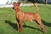 El Pinscher alemán es de pelo corto y liso, de tamaño mediano, de presencia orgullosa, de contorno de líneas fluidas, elegante y de construcción cuadrada. Es fuerte como el Schnauzer y su bien desarrollada musculatura se evidencia claramente durante el movimiento dado su pelaje corto y liso.